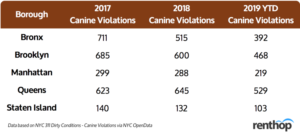 According to apartment listing portal RentHop’s latest study, New York City has one of the highest rates of poop complaints in the nation, thanks to the city’s overwhelming registered dog population, which totals more than 84,000.