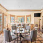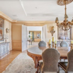 The main house itself is built to resemble a Tuscan villa with a large skylit rotunda with a double staircase in the foyer. The formal living room has coffered ceilings, and the master suite has a fireplace and a private balcony. There’s also a there’s a gym and a game room with a bar, and luxury finishes throughout include imported Italian limestone, tile and Venetian plaster. Listing photos show plush velvet sofas, a gilded chandelier, and a portrait of King in the dining room, but it’s unclear if the furnishings and decor are part of the sale.