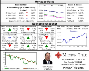Rates began moving downward last week as the government shutdown closed off federal economicdata, prompting the market to rely on private data points for decision-making. To be sure, a week ortwo of missed data will not be economically catastrophic, but it could mean sharper-than-normalmovements in the market as data is released after the shutdown ends. Fortunately, the CPI data will bereleased as it’s needed for the annual Social Security adjustment. However, it will be late. The datadrama could also impact whether the Fed cuts rates again or not. While the market is pricing in a highprobability, the recent meeting minutes revealed a greater reluctance to trim rates than most expertsexpected. The CPI data is now scheduled to be released a few days before the Fed meeting. Trump’s threat of more tariffs on China helped rates drop, but the threat seemed to be pulled backsomewhat over the weekend. If trade war rhetoric escalates again, we may see rates drop in responseto concerns over a potential negative economic impact. Other data could push rates back upward. Mortgage Rates and Economic Snapshot