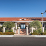 The house is designed in contemporary Mediterranean style with 10-foot ceilings and crown molding.